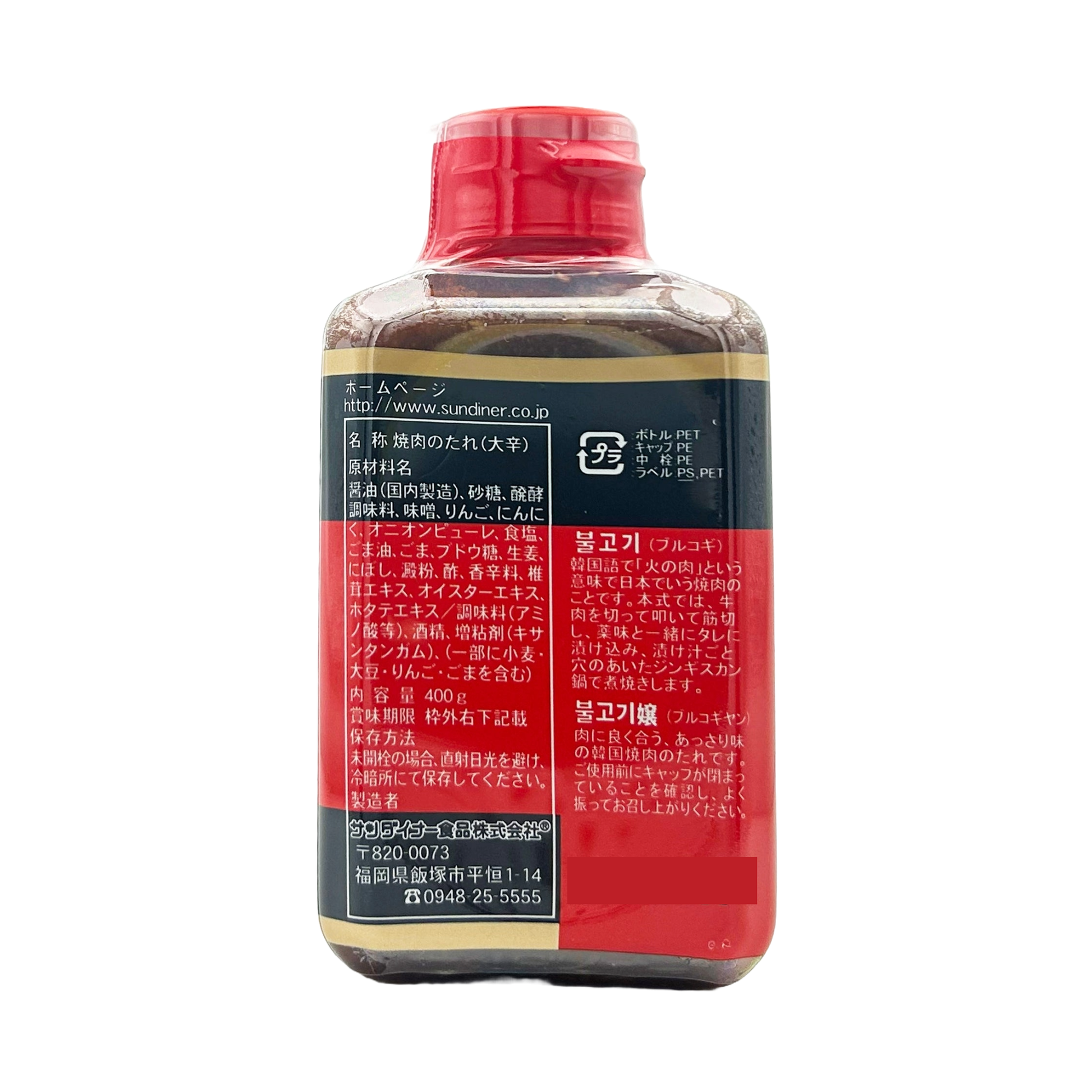 醤油(国内製造)、砂糖、醗酵調味料、味噌、りんご、にんにく、オニオンピューレ、食塩、ごま油、ごま、ブドウ糖、生姜、にぼし、澱粉、酢、香辛料、椎茸エキス、オイスターエキス、ホタテエキス/調味料(アミノ酸等)、酒精、増粘剤(キサンタンガム)(一部に小麦、大豆、りんご、ごまを含む)