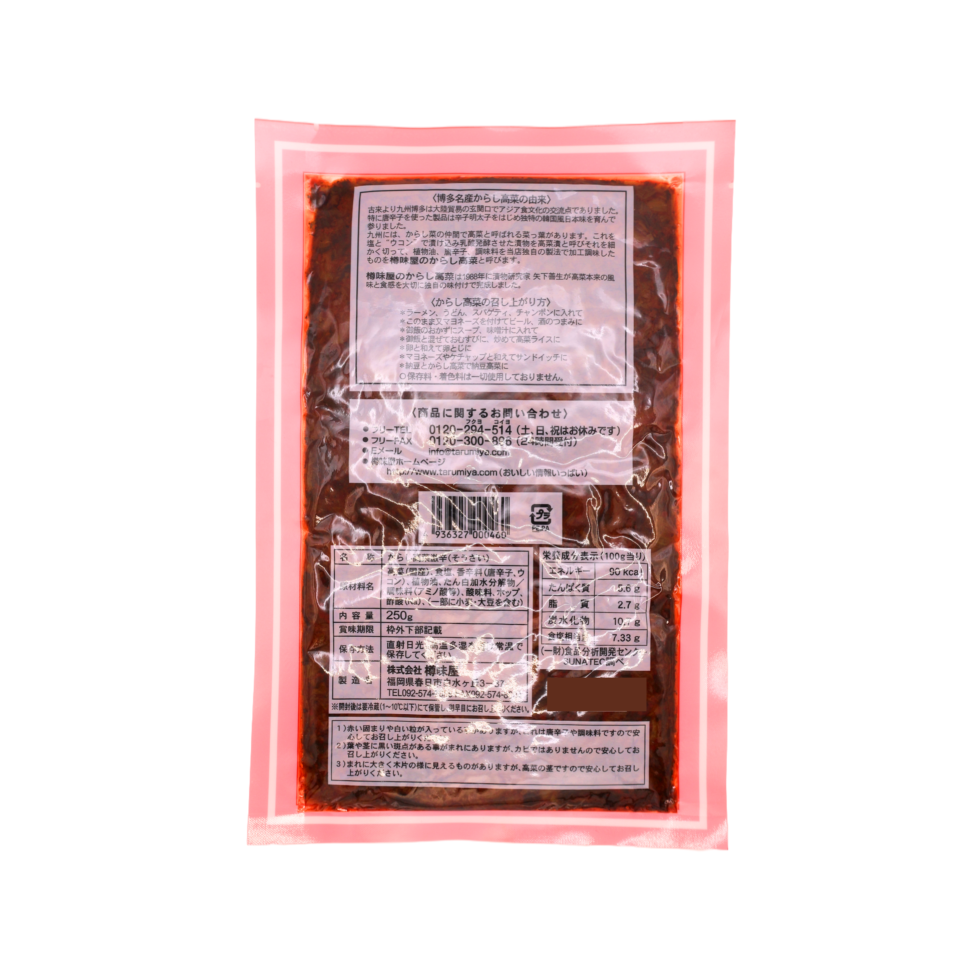 ウコンと天然塩でじっくり漬け込んだ、乳酸菌たっぷりのからし高菜。“激辛”は樽味屋のからし高菜 中辛の2倍の辛さ!強い刺激をお求めの方向けです!