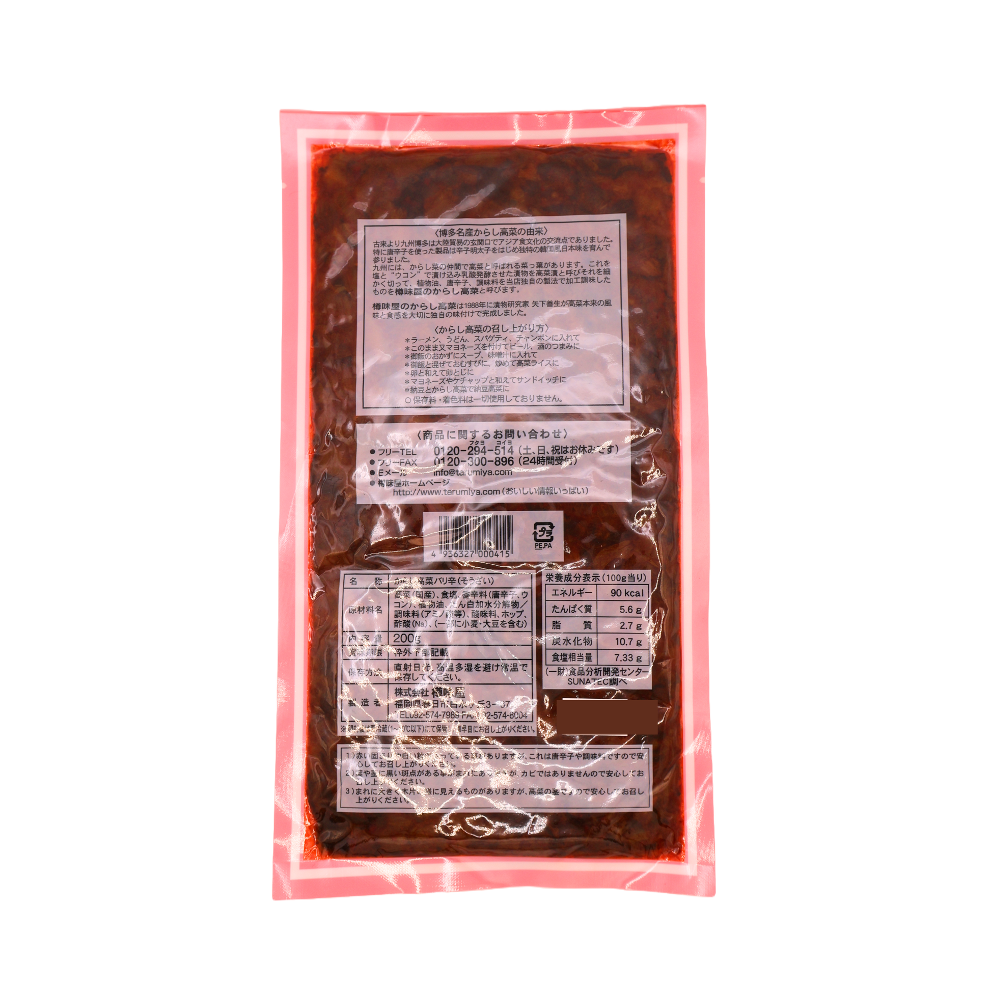高菜(国産)、食塩、香辛料(唐辛子、ウコン)、植物油、たん白加水分解物/調味料(アミノ酸等)、酸味料、ホップ、酢酸(Na)(一部に小麦、大豆を含む)